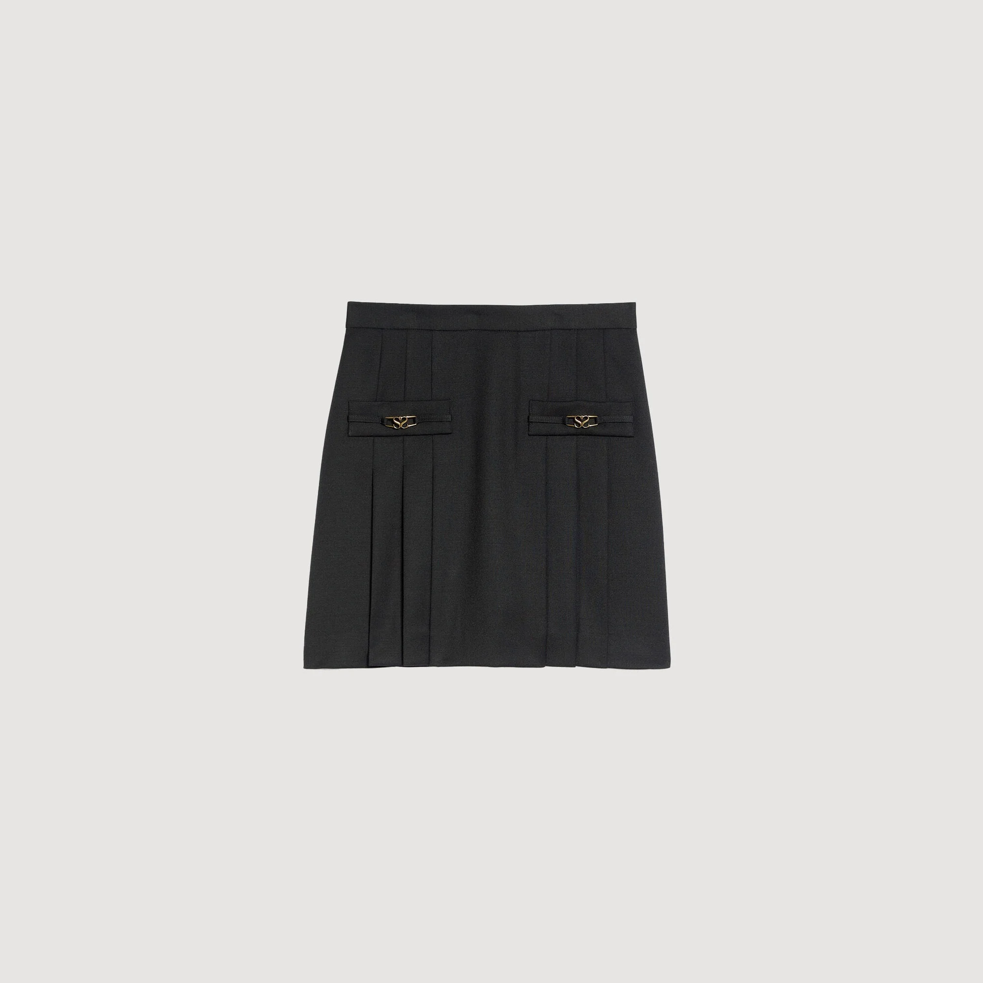 Sandro women's skirt • Short skirt with stitched pleats • Large trompe l'oeil piped pockets with fancy buckle created by our studio • Mid-thigh length • Fastened with a concealed zip at the center back • Model is wearing a size 36/UK 8/US 2-4 • Model measures 177 cm The model is 177 cm / 5'9 tall and wears a size 36 FR / 8 UK COMPOSITION Main fabric: 100% wool Reference: SFPJU00444_20