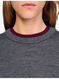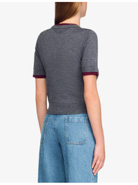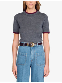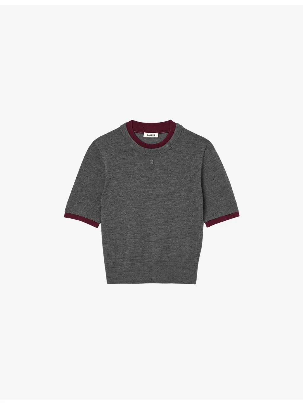 PRODUCT DETAILS - Sandro wool jumper - 100% wool - Regular fit, round-neck, short sleeves, contrast trim, cropped, knitted - Hand wash - True to size - Model is 5ft 9in/1.75m and wears a size UK 8 - Midweight, slight stretch Ref: R04490569