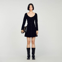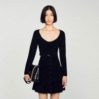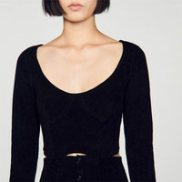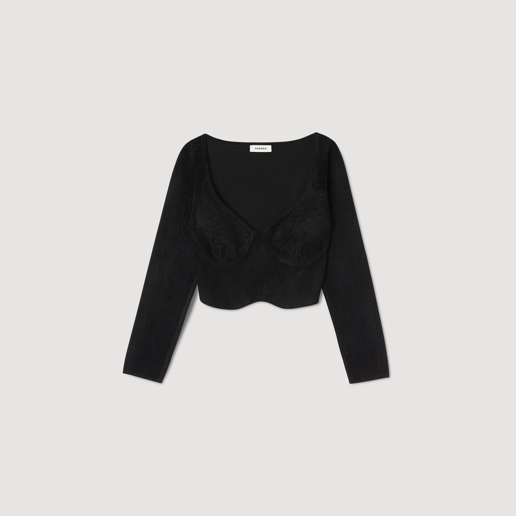 Figure-hugging cropped sweater in velvet knit, with long sleeves, an oversized round neck and embellished with corset-effect panels. Sandro Women's velvet-effect knit cropped sweater Round neckline Long sleeves Corset details This sweater match the skirt The model is 180 cm / 5'11 tall and wears a size 1 FR / 8 UK COMPOSITION Lower main fabric: 57% polyamide, 41% viscose, 2% elastane Upper main fabric: 52% viscose, 47% polyamide, 1% elastane Sleeves: 52% viscose, 47% polyamide, 1% elastane Reference: SFPPU02018_20