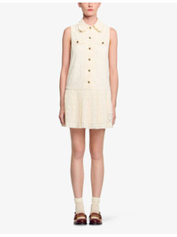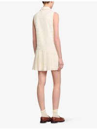 PRODUCT DETAILS - Sandro lace mini dress - 100% polyester - Regular fit, collar, sleeveless, decorative chest pockets - Dry clean - True to size - Model is 5ft 10in/1.78m and wears a size UK 8 - Lightweight, non-stretch Ref: R04490551