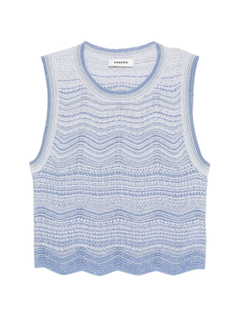 sleeveless top Highlights - Sky blue - Round neck - Sleeveless - Scalloped hem Imported Composition Viscose 70%, Polyester 30% Washing instructions Hand Wash
