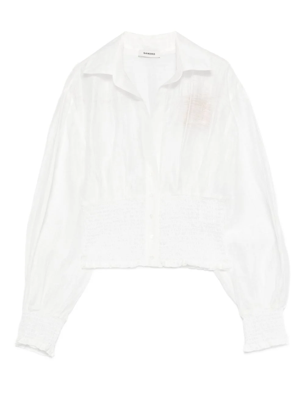 smocked linen shirt Highlights - White - Smocked detail - Button fastening - Long sleeves Imported Composition Linen/Flax 86%, Polyester 14% Washing instructions Machine Wash