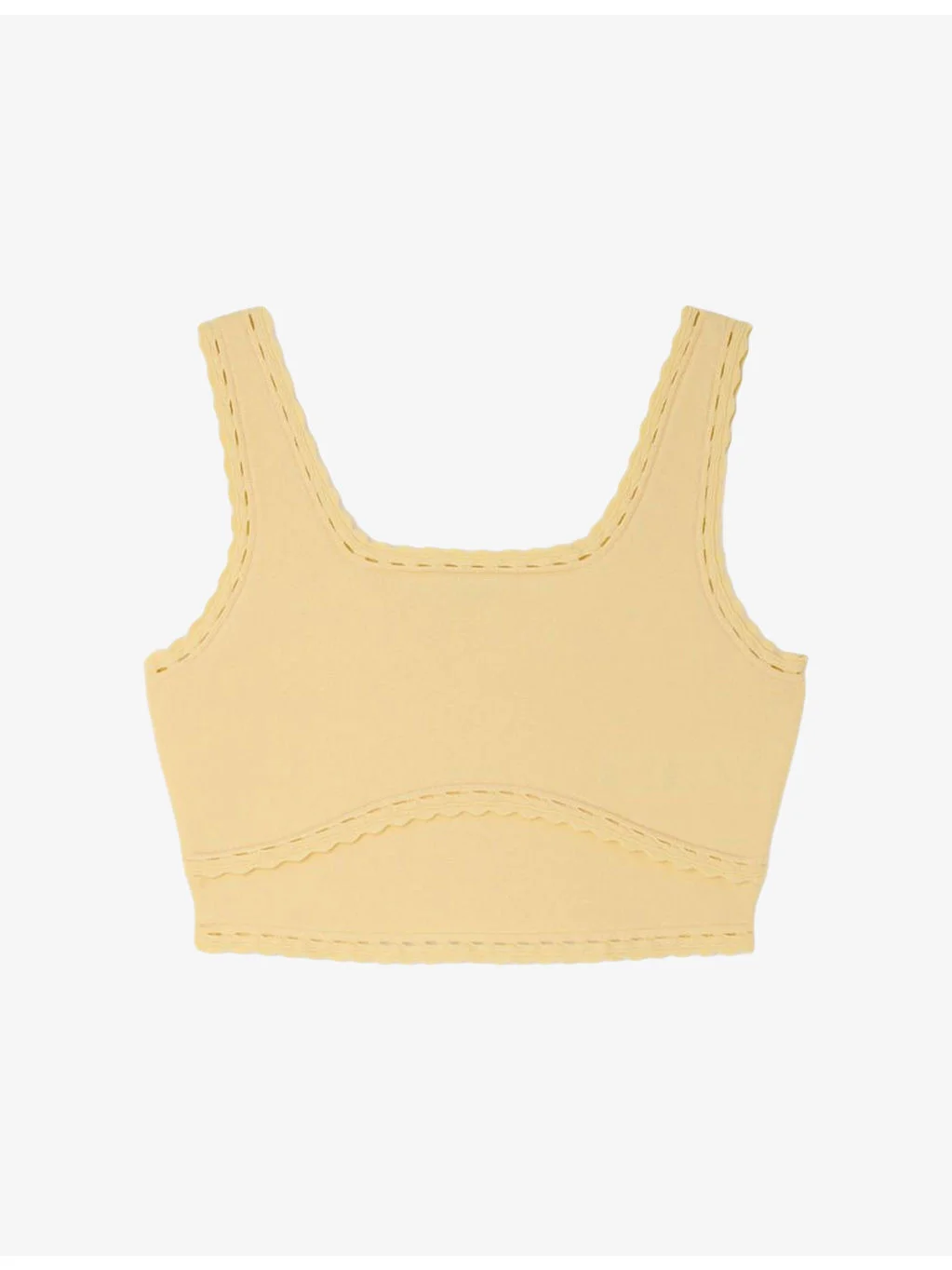 PRODUCT DETAILS - Sandro knitted top - 62% lyocell, 19% polyamide, 17% acetate, 2% elastane - Regular fit, square-neck, sleeveless, decorative trim, cropped - Hand wash - True to size - Model is 5ft 9in/1.75m and wears a size UK 8 - Lightweight, slight stretch Ref: R04598538