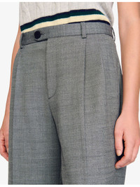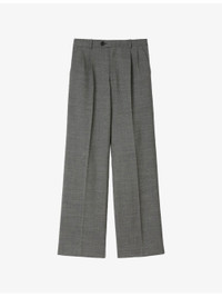 PRODUCT DETAILS - Sandro stretch wool-blend trousers - 55% wool, 41% polyester, 4% elastane - Exposed button and concealed zip-fly fastening at front - Regular fit, high rise, belt loops, straight leg, pleated front, pressed centre creases, two side pockets, two buttoned welt pockets at back - Dry clean only - True to size - Midweight, slight stretch Ref: R04490659