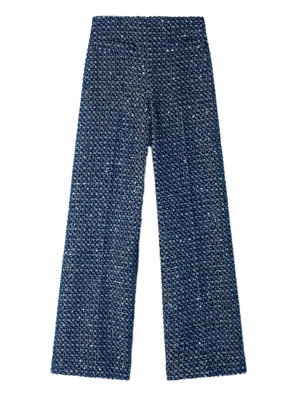 sequin-embellished straight trousers Highlights - Navy blue - Geometric pattern - Sequin embellishment - Faux welt pockets - Pleats - Side zip fastening Imported Composition Outer: Cotton 90%, Polyester 10% Lining: Polyester 100% Washing instructions Read Manufacturer Guidelines