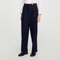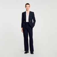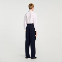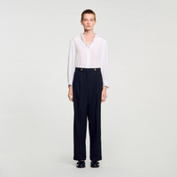 Straight, wide-leg trousers with button placket on the sides. Sandro Women's straight-leg trousers Wide legs Button plackets Zip with button and hook-and-eye fastening Pintuck Roll-up legs These trousers match the jacket The model is 178 cm / 5'10 tall and wears a size 36 FR / 4 US COMPOSITION Main fabric: 55% polyester, 45% virgin wool Lining: 100% cotton Reference: SFPPA01517_20