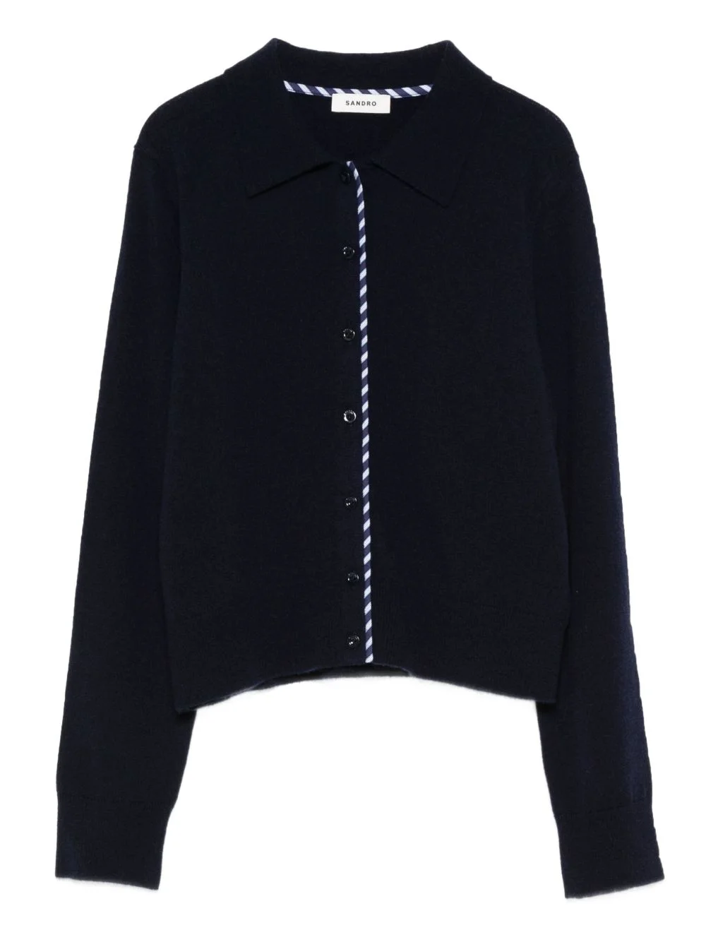 striped-detail cardigan Highlights - Navy blue - Polo collar - Long sleeves - Button fastening - Striped trim - Ribbed hem Imported Composition Wool 90%, Cashmere 10% Washing instructions Hand Wash