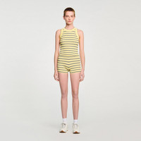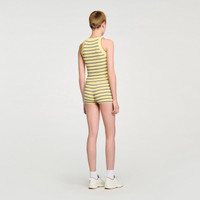 Striped fine rib knit vest top with round neck and signature tag. - Sandro Women's striped knit vest top - Round neck - Sleeveless - 4S tag on the front - Designed for a slim fit Reference: SFPPU02635_520 COMPOSITION & CARE Composition - Main fabric: 54% lyocell, 25% viscose, 17% polyamide, 4% silk Care advice - Hand wash - Do not bleach - Do not tumble dry - Iron at a maximum temperature of 110°C without steam - F - Professional dry clean, with hydrocarbon solvent, normal treatment