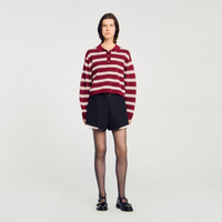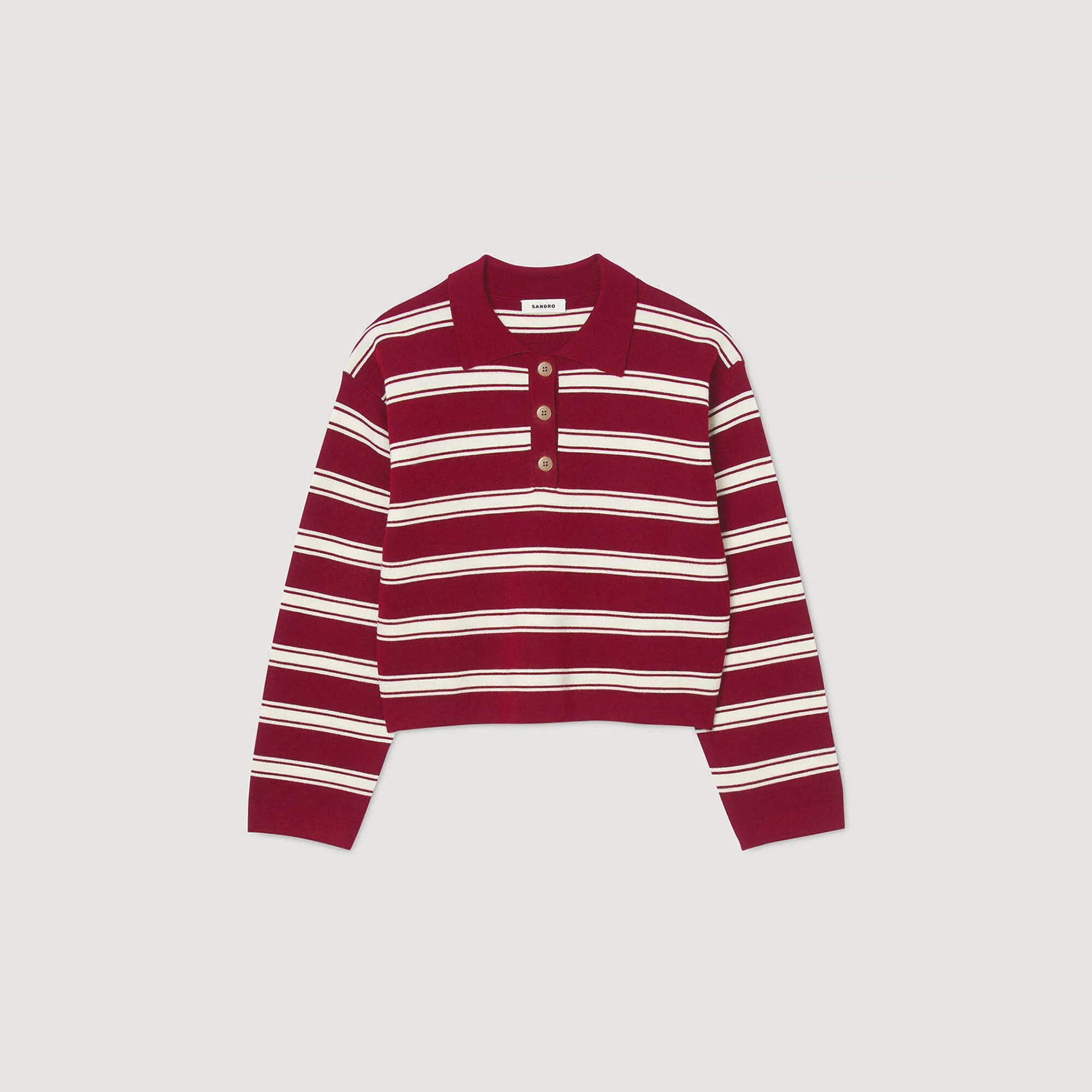 Fine knit striped sweater with buttoned polo collar and long sleeves. - Sandro Women's fine knit polo sweater - Buttoned polo collar - Long sleeves - Stripes - True to size Reference: SFPPU02696_34 COMPOSITION & CARE Composition - Main fabric: 52% wool, 48% acrylic - Collar: 41% acrylic, 38% wool, 19% polyamide, 2% elastane Care advice - Hand wash - Do not bleach - Do not tumble dry - Iron at a maximum temperature of 110°C without steam - F - Professional dry clean, with hydrocarbon solvent, normal treatment