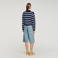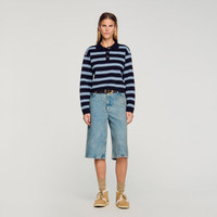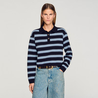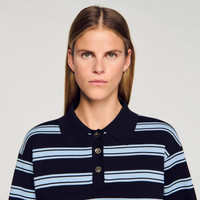 Striped fine knit polo sweater with buttoned polo collar at the front and long sleeves. - Sandro Women's striped polo sweater - Fine knit - Buttoned polo collar - Long sleeves - Straight cut - Coupe conforme a la taille Reference: SFPPU02633_44 COMPOSITION & CARE Composition - Main fabric: 77% cotton, 12% silk, 11% linen - Collar: 61% cotton, 17% polyamide, 11% silk, 9% linen, 2% elastane Care advice - Hand wash - Do not bleach - Do not tumble dry - Iron at a maximum temperature of 110°C without steam - F - Professional dry clean, with hydrocarbon solvent, normal treatment