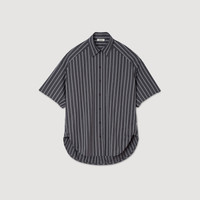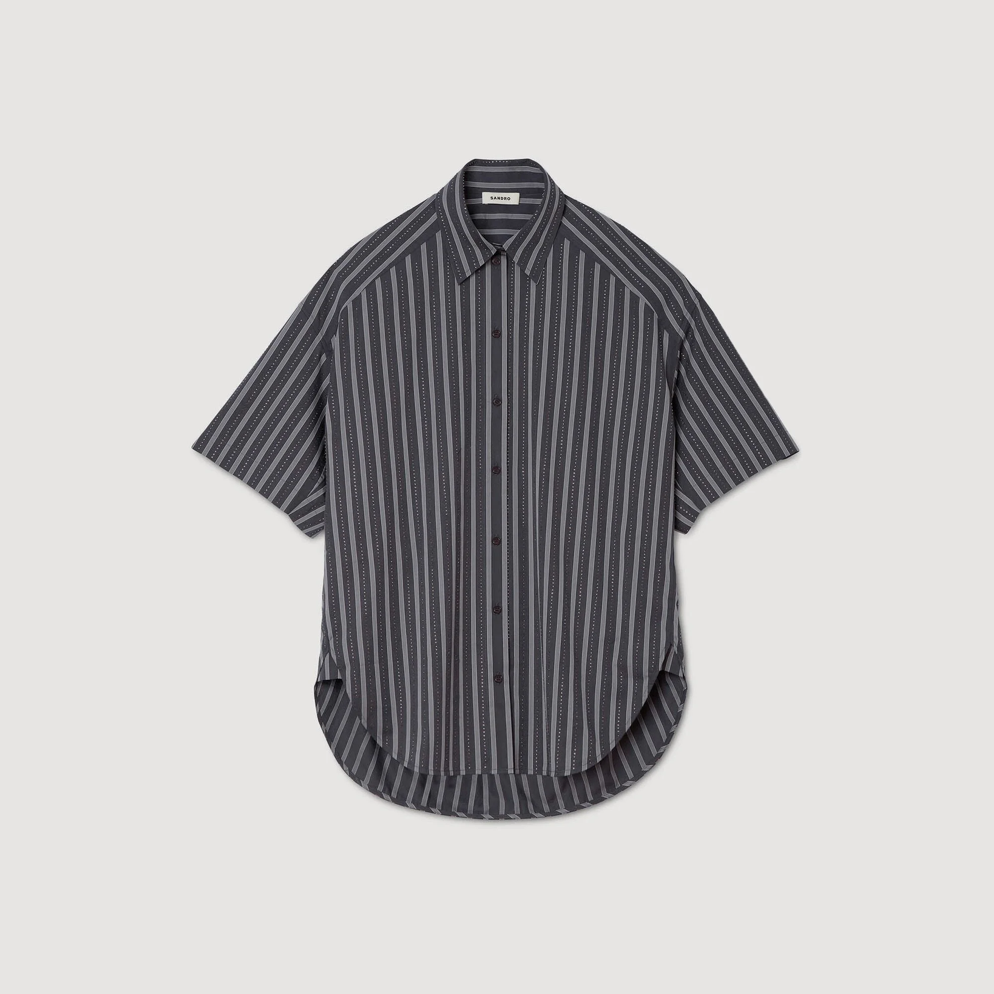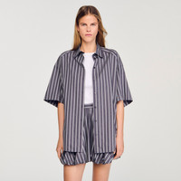 Oversized striped shirt with rhinestone stripes, featuring a shirt collar, short sleeves and a button fastening at the front. - Sandro Women's oversized striped shirt - Shirt collar - Short sleeves - Button fastening - Stripes and rhinestones - Designed for an oversized fit Reference: SFPCM01451_24 COMPOSITION & CARE Composition - Main material: 100% cotton Care advice - Hand wash - Do not bleach - Do not tumble dry - Iron at a maximum temperature of 110°C without steam - Do not dry clean