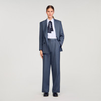 Straight-leg, wide-leg striped trousers with pleat details at the waist, featuring Italian pockets and buttoned welt pockets at the back. - Sandro Women's wool trousers - Ironed creases down the legs - Italian and welt pockets - Belt loops - True to size Reference: SFPPA01788_47 COMPOSITION & CARE Composition - Main material: 52% polyester, 27% wool, 17% viscose, 4% elastane - Fusible interfacing: 100% polyester - Belt lining: 91% cotton, 9% polyester - Pocket lining: 100% cotton Care advice - Do not wash - Do not bleach - Do not tumble dry - Iron at a maximum temperature of 110°C without steam - F/ - Professional dry clean, with hydrocarbon solvent, gentle treatment