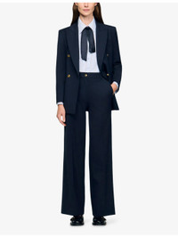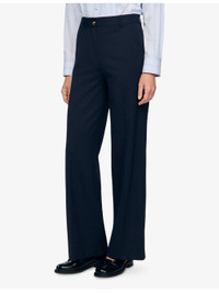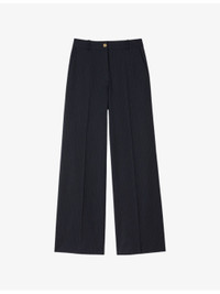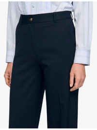 PRODUCT DETAILS - Sandro stretch wool-blend trousers - 55% wool, 41% polyester, 4% elastane - Button and zip-fly fastening - Regular fit, two pockets at the side, gold-tone hardware, all-over stripe pattern - Machine wash at 30°C - True to size - Model is 5ft 9in/1.75m and wears a size UK 8 - Midweight, non-stretch Ref: R04512060
