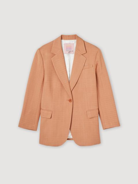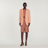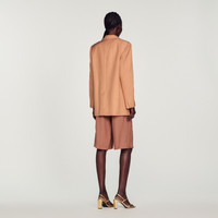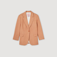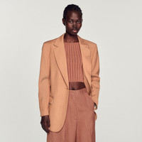 Tailored jacket with long sleeves, a button fastening, and flap pockets. Sandro Women's tailored jacket Long sleeves 1 button 2 flap pockets Piped pocket on the chest Back vent The model is 5'8" tall and wears a size 36 FR / 4 US These jacket have a matching pant Reference : SFPVE00815 MATERIALS Main fabric: 100% viscose Under collar: 100% polyester Lining: 100% viscose Pocket lining: 100% cotton