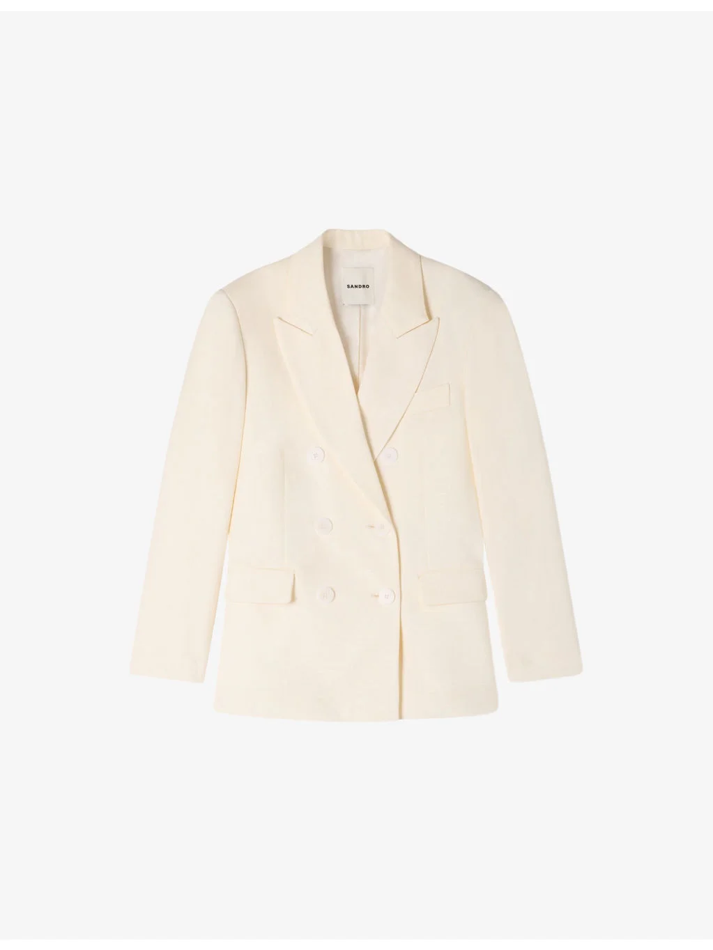 PRODUCT DETAILS - Sandro woven blazer - 100% viscose - Exposed button fastening at front - Regular fit, peak lapels, welt pocket at chest, long sleeves, two flap pockets at the side, double breasted - Dry clean - True to size - Model is 5ft 9in/1.75m and wears a size UK 8 - Midweight, non-stretch Ref: R04618174