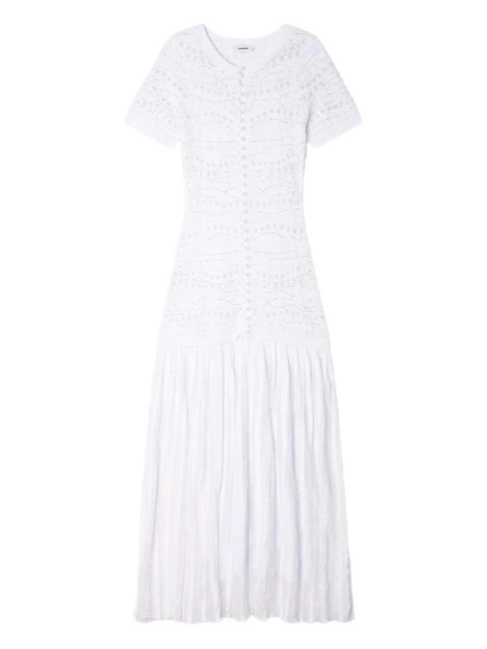 textured embellished knitted dress Highlights - White - Textured knit - Round neck - Short sleeves - A-line skirt - Button front fastening Imported Composition Outer: Viscose 57%, Polyamide 39%, Polyester 4% Lining: Viscose 63%, Polyamide 37% Washing instructions Read Manufacturer Guidelines