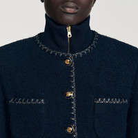Reference: SFPVE01268_44 COMPOSITION & CARE Composition - Main material: 35% cotton, 23% wool, 19% polyester, 10% acrylic, 7% alpaca, 6% polyamide - Lining: 100% viscose - Buttons: 100% nacre - Pocket lining: 100% cotton - Rib: 49% acrylic, 45% wool, 5% polyamide, 1% elastane Care advice - Do not wash - Do not bleach - Do not tumble dry - Do not iron - F/ - Professional dry clean, with hydrocarbon solvent, gentle treatment