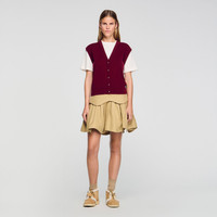 Two-tone 2-in-1 T-shirt and jacket sweater in wool and cashmere knit, with round neck, short sleeves and decorative buttons. - Sandro Women's two-tone wool and cashmere knit sweater - T-shirt and jacket style - Round neck - Short sleeves - Button placket - Designed for a boxy fit Reference: SFPPU02516_34 COMPOSITION & CARE Composition - Main fabric: 92% wool, 8% cashmere - Secondary fabric: 59% cotton, 24% viscose, 17% polyamide - Band: 82% wool, 11% polyamide, 7% cashmere Care advice - Hand wash - Do not bleach - Do not tumble dry - Iron at a maximum temperature of 110°C without steam - F - Professional dry clean, with hydrocarbon solvent, normal treatment
