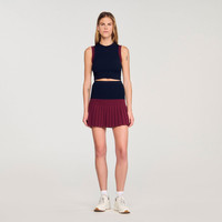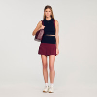 Mini pleated skirt in two-tone knit with an elasticated waistband. - Sandro Women's mini two-tone knit skirt - Pleated effect - Elasticated waistband - Flared cut - Designed for a flared fit Reference: SFPJU01503_44 COMPOSITION & CARE Composition - Main fabric: 49% polyamide, 49% viscose, 2% elastane - Band: 50% viscose, 48% polyamide, 2% elastane Care advice - Hand wash - Do not bleach - Do not tumble dry - Iron at a maximum temperature of 110°C without steam - F - Professional dry clean, with hydrocarbon solvent, normal treatment