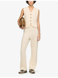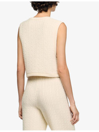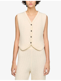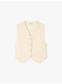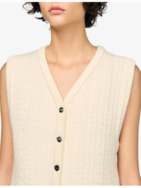 PRODUCT DETAILS - Sandro wool-blend jacket - 96% wool, 4% polyamide - Exposed button fastening at front - Regular fit, V-neck, sleeveless, button-down design, all-over cable-knit pattern - Hand wash - True to size - Model is 5ft 9in/1.75m and wears a size UK 8 - Midweight, non-stretch Ref: R04501201