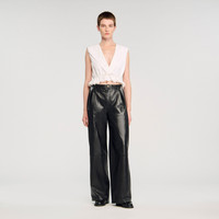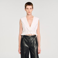 Sleeveless crop top with a wrap V-neckline, hidden press-stud fastening, shoulder pads and waist cut-outs with gathered ruffle. - Sandro Women's crop top - Wrap V-neckline - Shoulder pads - Gathered ruffle - Tie fastening - Designed for a cinched fit Reference: SFPTO00830_11 COMPOSITION & CARE Composition - Main material: 60% viscose, 40% linen - Body lining: 100% polyester - Ruffle lining: 100% polyester Care advice - Do not wash - Do not bleach - Do not tumble dry - Iron at a maximum temperature of 110°C without steam - F/ - Professional dry clean, with hydrocarbon solvent, gentle treatment