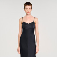 Satin-effect lingerie-style maxi dress with spaghetti straps, a neckline adorned with tone-on-tone trim and a flared skirt. - Sandro Women's fluid satin-effect maxi dress - Lingerie style - Spaghetti straps - Back zip fastening - Flared skirt - Designed for a loose fit Reference: SFPRO04527_44 COMPOSITION & CARE Composition - Main material: 100% polyester Care advice - Do not wash - Do not bleach - Do not tumble dry - Iron at a maximum temperature of 110°C without steam - F/ - Professional dry clean, with hydrocarbon solvent, gentle treatment