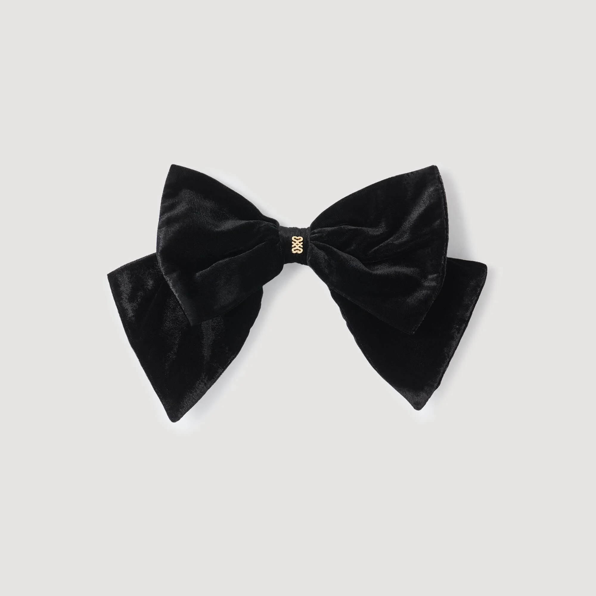 Hair barrette adorned with a velvet bow and signature tag. - Sandro Women's velvet bow barrette - Clip barrette - 4S tag Reference: SFABI00064 COMPOSITION & CARE Composition - Main material: 74% viscose, 26% polyamide Care advice - Do not wash - Do not bleach - Do not tumble dry - Do not iron - Do not dry clean