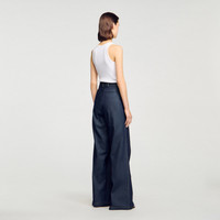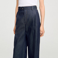Wide-leg suit trousers in raw denim with contrasting topstitching, with belt loops and button fastening. - Sandro Women's wide-leg denim trousers - Button fastening - Italian pockets - Welt pockets on the back - Pleats on the front and back - Designed for a boxy fit Reference: SFPPA01742_D324 COMPOSITION & CARE Composition - Main material: 100% cotton - Pocket lining: 100% cotton Care advice - Do not wash - Do not bleach - Do not tumble dry - Iron at a maximum temperature of 110°C without steam - F/ - Professional dry clean, with hydrocarbon solvent, gentle treatment