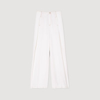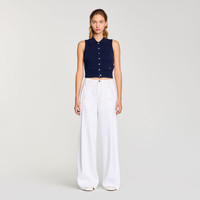 Wide-leg jeans with pleats and topstitched details, with front and back pockets. - Sandro Women's wide-leg jeans - Contrasting topstitching - 5 pockets - Zip fastening with buttons - Designed for an oversized fit Reference: SFPJE00713_10 COMPOSITION & CARE Composition - Main fabric: 100% cotton - Lining: 65% polyester, 35% cotton Care advice - Gentle cycle 30° - Do not bleach - Do not tumble dry - Iron at a maximum temperature of 110°C without steam - Do not dry clean