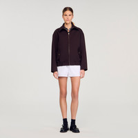 Oversized jacket with long sleeves and zip fastening, featuring a shirt collar and elasticated hem. - Sandro Women's oversized jacket - Long sleeves - Shirt collar - Flap pockets - Elasticated hem with gathers - Lined - Designed for a boxy fit Reference: SFPBL01171_G023 COMPOSITION & CARE Composition - Main material: 54% polyester, 44% virgin wool, 2% elastane - Lining: 100% viscose - Pocket lining: 100% cotton Care advice - Do not wash - Do not bleach - Do not tumble dry - Iron at a maximum temperature of 110°C without steam - F/ - Professional dry clean, with hydrocarbon solvent, gentle treatment