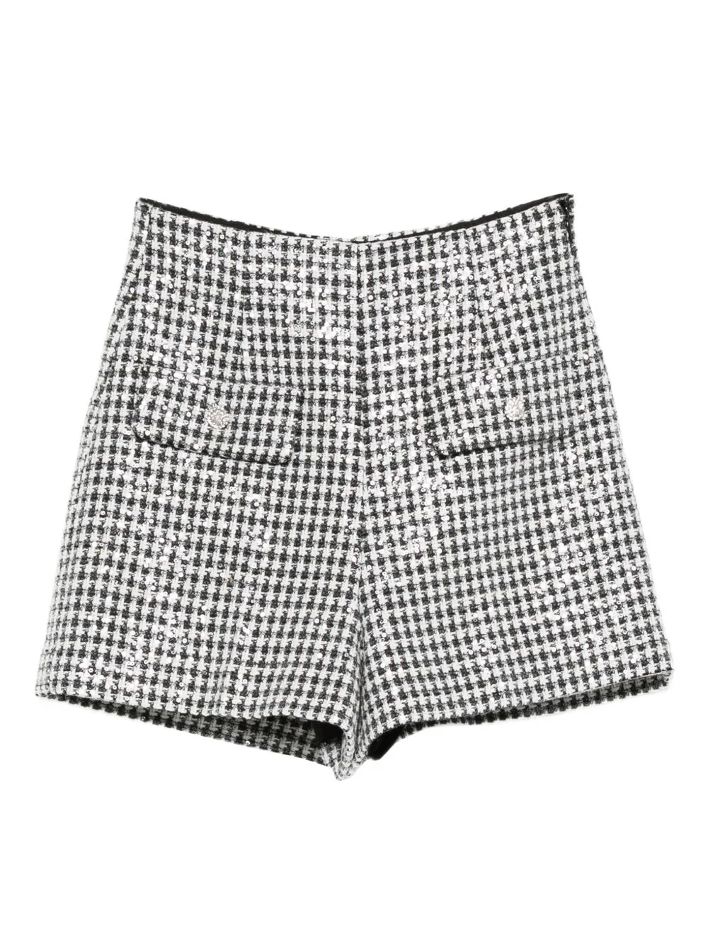 zip-fastening shorts Highlights - Black and white - Sequin embellishment - Houndstooth pattern - Buttoned flap pocket - Side zip-fastening Imported Composition Outer: Polyester 75%, Acrylic 12%, Viscose 5%, Polyamide 5%, Wool 2%, other fibers 1% Lining: Polyester 100%, Cotton 100% SIZE & FIT Model measurements Height 5 ft 9 in(1.76 m) Bust/Chest 32.28 in(82 cm) Hips 35.43 in(90 cm) Waist 25.19 in(64 cm) Washing instructions Do Not Wash/Do Not Dry Clean