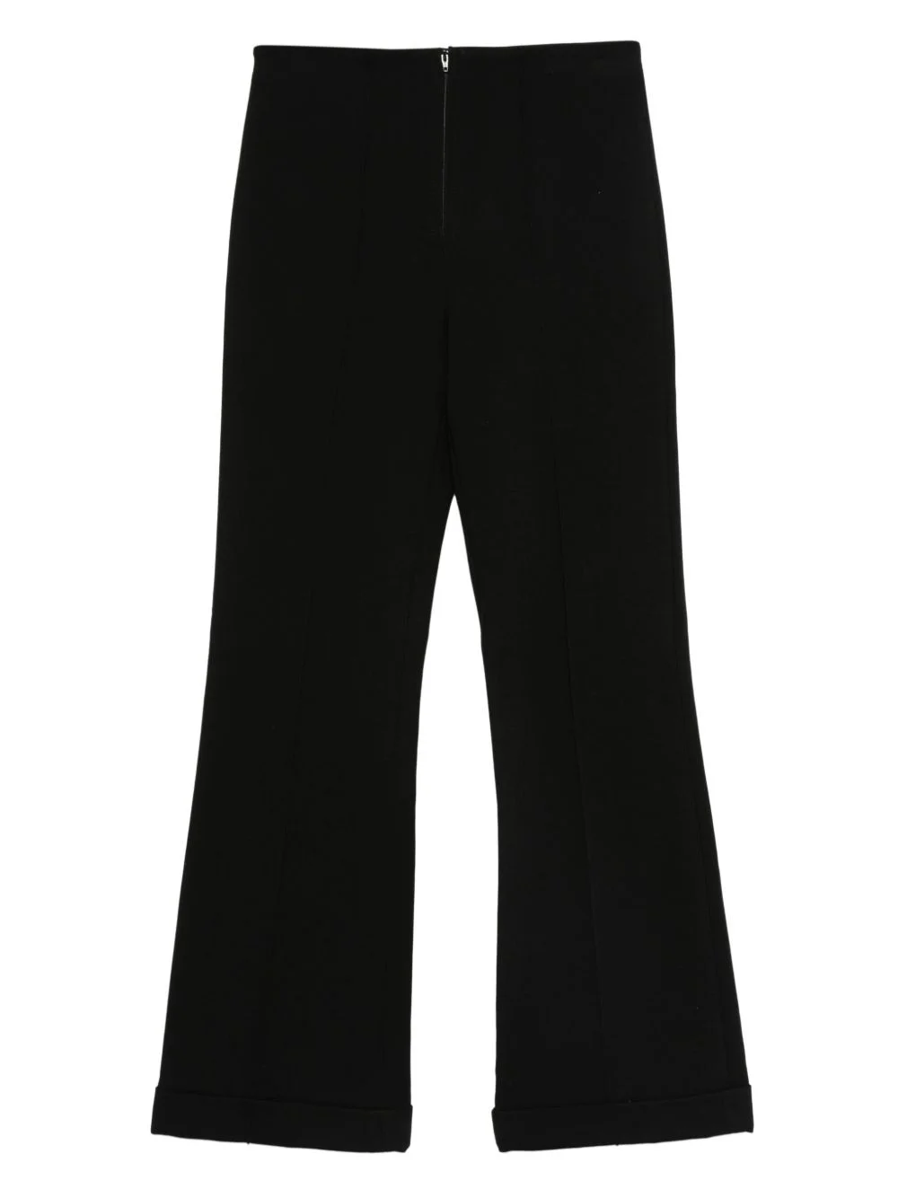 zip-fly flared trousers Highlights - Black - Zip fly - Flared leg - High waist - Cuffed hems Imported Composition Viscose 68%, Polyamide 28%, Elastane 4% Washing instructions Read Manufacturer Guidelines