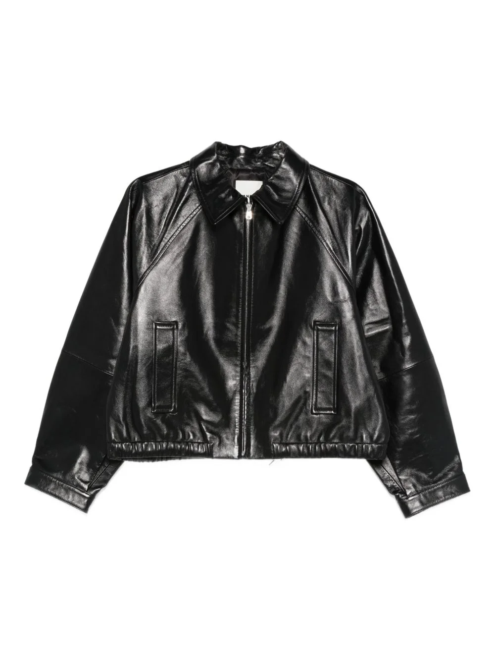 zip leather jacket Highlights - Black - Leather - Zip fastening - Point collar - Elasticated hem - Panelled design Imported Composition Outer: Calf Leather 100% Lining: Polyester 55%, Viscose 45% Washing instructions Read Manufacturer Guidelines