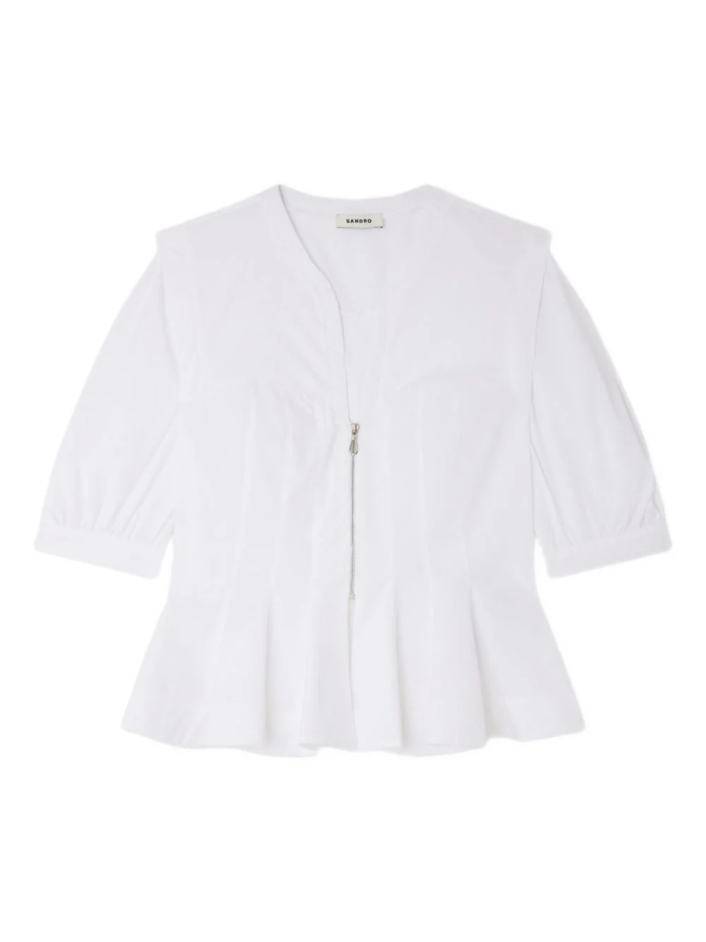 zip-up peplum shirt Highlights - White - V-neck - Zip fastening - Short sleeves - Peplum hem Imported Composition Cotton 100% Washing instructions Machine Wash