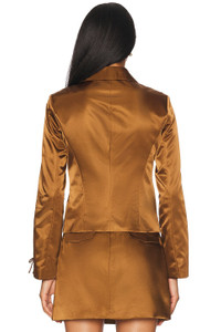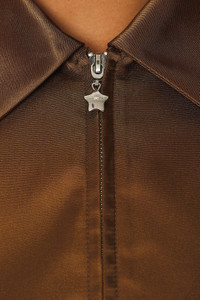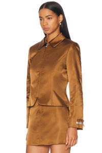Details - Self: 100% nylon - Lining: 100% viscose - Made in USA - Dry clean only - Hidden front zipper closure - Bow detail with logo detail at left sleeve - Satin fabric - Item not sold as a set - Our Style No. SLGF-WO44 - Manufacturer Style No. S25O038-F125