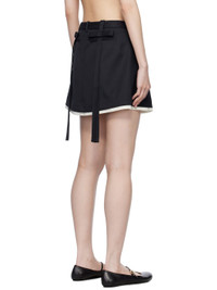 Polyester- and wool-blend twill miniskirt. · Belt loops · Two-pocket styling · Zip fly · Inverted box pleats at front · Plain-woven trim at hem · Bow appliques at back · Full logo-woven satin lining Supplier color: Black Body: 55% polyester, 45% wool. Trim: 100% polyester. Lining: 100% viscose. Made in United States 251677F090003