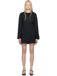 Polyester- and wool-blend twill minidress. · Crewneck · Princess seams · Button closure · Padded shoulders · Bow accent and logo patch at cuff · Concealed zip closure at back · Logo-woven viscose twill lining Supplier color: Black Body: 55% polyester, 45% wool. Lining: 100% viscose. Made in United States 251677F052008