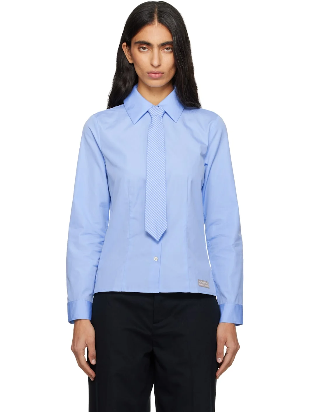 Cotton poplin shirt. · Detachable tie at spread collar · Button closure · Darts at front and back · Logo patch at hem · Vented side seams · Buttoned barrel cuffs · Mother-of-pearl hardware Supplier color: Light blue 100% cotton. Made in Portugal 252677F109008
