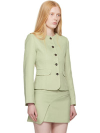 Recycled polyester twill blazer. · Round neck · Button closure · Flap pockets · Princess seams at bodice · Padded shoulders · Full logo-woven satin twill lining Supplier color: Sage Body: 100% recycled polyester. Lining: 100% viscose. Made in United States 252677F057000