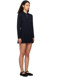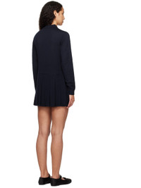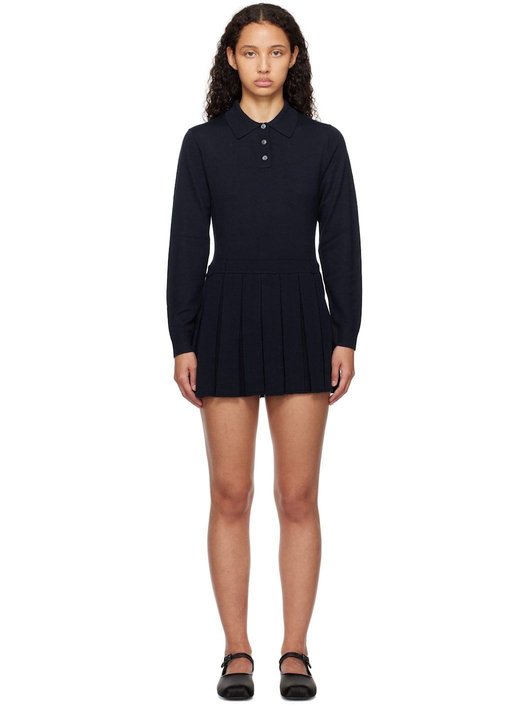 Lightweight rib-knit merino wool minidress. · Spread collar · Three-button placket · Belt loops at waist · Box pleats at hem · Mother-of-pearl hardware Supplier color: Navy