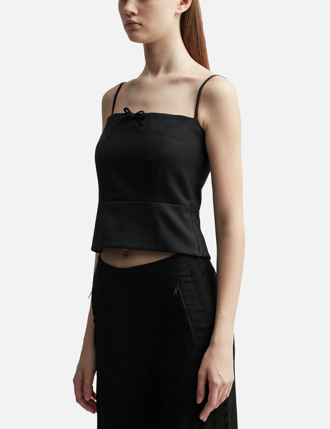 - Sandy Liang - Hunter Top - Corset-like fitted top - Side zip fastening - Concealed pocket at rear - Color: Black - Material: 55% Polyester, 45% Wool - See more Tops and Clothing SIZING - Model wears size 2 - Model measures: Height 180cm, Chest 33’’/84cm, Waist 23’’/58.42cm, Hip 36’’/91cm