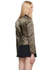 Nylon satin jacket. · Spread collar · Zip closure · Princess seams · Padded shoulders · Bow accent and logo patch at cuff · Welt pocket at interior · Full viscose twill lining Supplier color: Olive Body: 100% nylon. Lining: 100% viscose. Made in United States 251677F063016