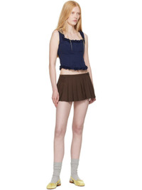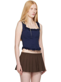 Stretch polyester- and cotton-blend twill top. · Corset-style construction · Ruffled trim at square neck and hem · Curved front hem · Zip closure at back collar · Viscose satin lining Supplier color: Navy Body: 64% polyester, 34% cotton, 2% elastane. Lining: 100% viscose. Made in United States 252677F111002