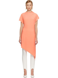 Stretch crepe jersey midi dress. · Asymmetrical construction · Cowl neck · Cutout at back Supplier color: Salmon 95% polyester, 5% spandex. Made in United States 252677F052017