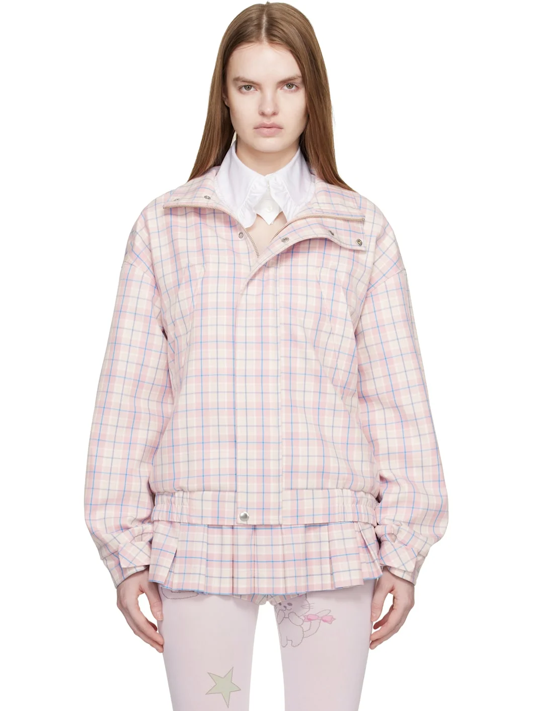 Twill jacket. · Check pattern throughout · Stand collar · Zip closure with press-stud placket · Zip pockets at fornt · Elasticized hem · Velcro tab at partially elasticized cuffs · Logo-embroidered locker loop at back · Flap pocket at back · Full satin lining Supplier color: Pink multi Body: 65% polyester, 35% rayon. Lining: 100% viscose. Made in United States 261677F063000
