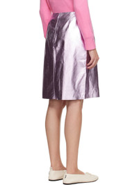 Grained lambskin lame midi skirt. · Mid-rise · Inverted box pleat at front · Raw edge at hem · Zip closure at back · Fully lined Supplier color: Lilac Body: 100% lambskin. Lining: 100% viscose. Made in Turkey 252677F092015