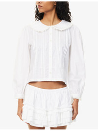 PRODUCT DETAILS - Sandy Liang cotton shirt - 100% cotton - Button fastening - Round collar, long sleeves, front and back pleats, embroidered logo at bows at front, broderie-anglaise-trim around collar - Machine wash mild - True to size - Size small: length 20in / 50.8cm - Model is 5ft 10in/1.78m and wears a size small - Lightweight, non-stretch Ref: R04488306