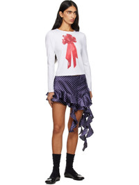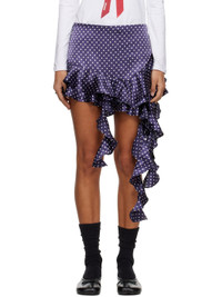 Satin miniskirt. · Polka-dot pattern printed throughout · Ruffles at tiered asymmetric hem · Concealed zip closure at side seam · Full crepe lining supplier color: Navy multi 100% polyester. Made in United States 252677F090008