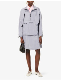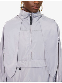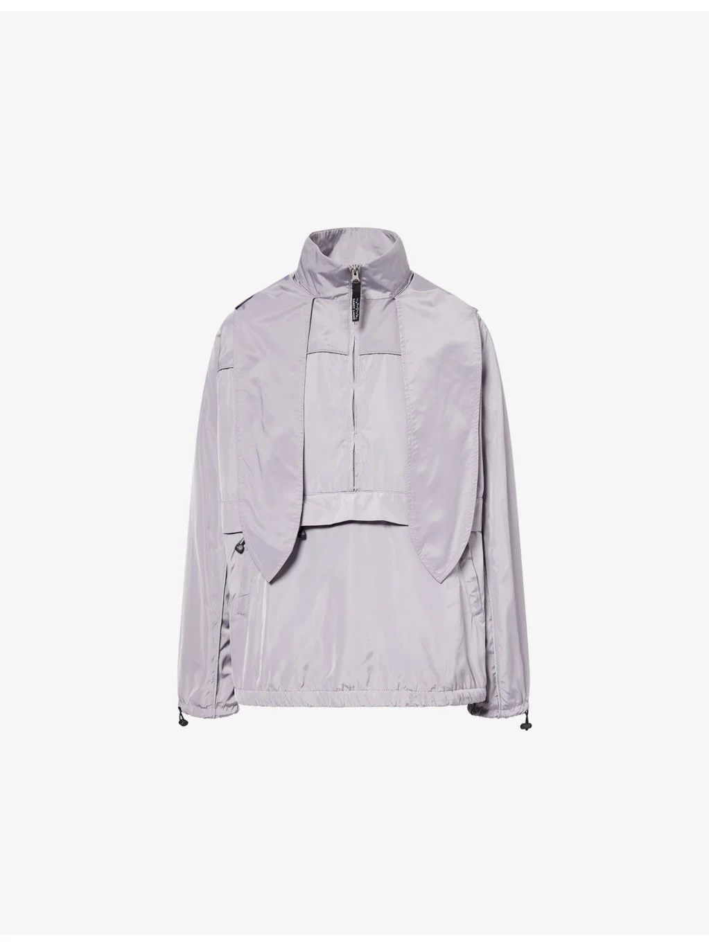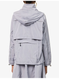 PRODUCT DETAILS - Sandy Liang woven jacket - 100% polyester - Concealed zip fastening at front - Relaxed fit, high neck, hood, long sleeves, kangaroo zip pockets at front, logo print and zip pocket at back, elasticated trims, fully lined - Machine wash cold - True to size - Size small: length 24in / 62cm - Model is 5ft 10in/1.78m and wears a size small - Midweight, non-stretch Ref: R04518975