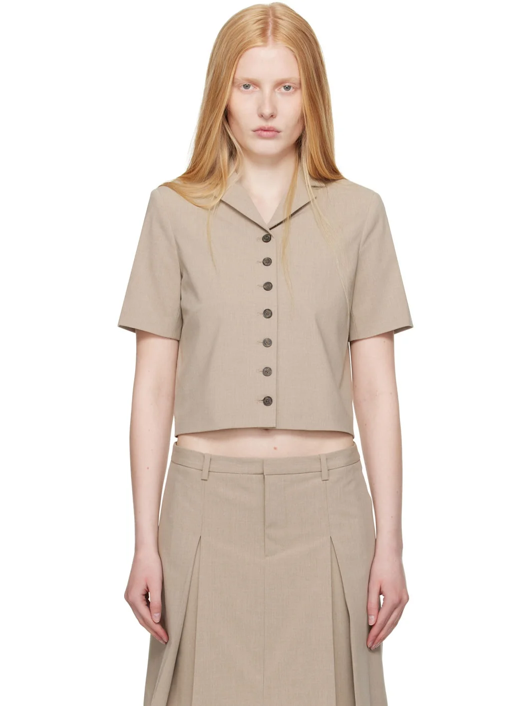 Plain-woven stretch polyester- and rayon-blend jacket. · Lightweight · Notched lapel · Button closure · Padded shoulders · Full logo-woven satin twill lining Supplier color: Taupe Body: 57% polyester, 29% rayon, 10% wool, 4% spandex. Lining: 100% viscose. Made in United States 252677F109004